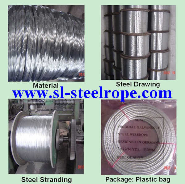 6)Surface:galvanized/ungalvanized , CoatedPVC/PE/NYLOY steel wire rope etc.